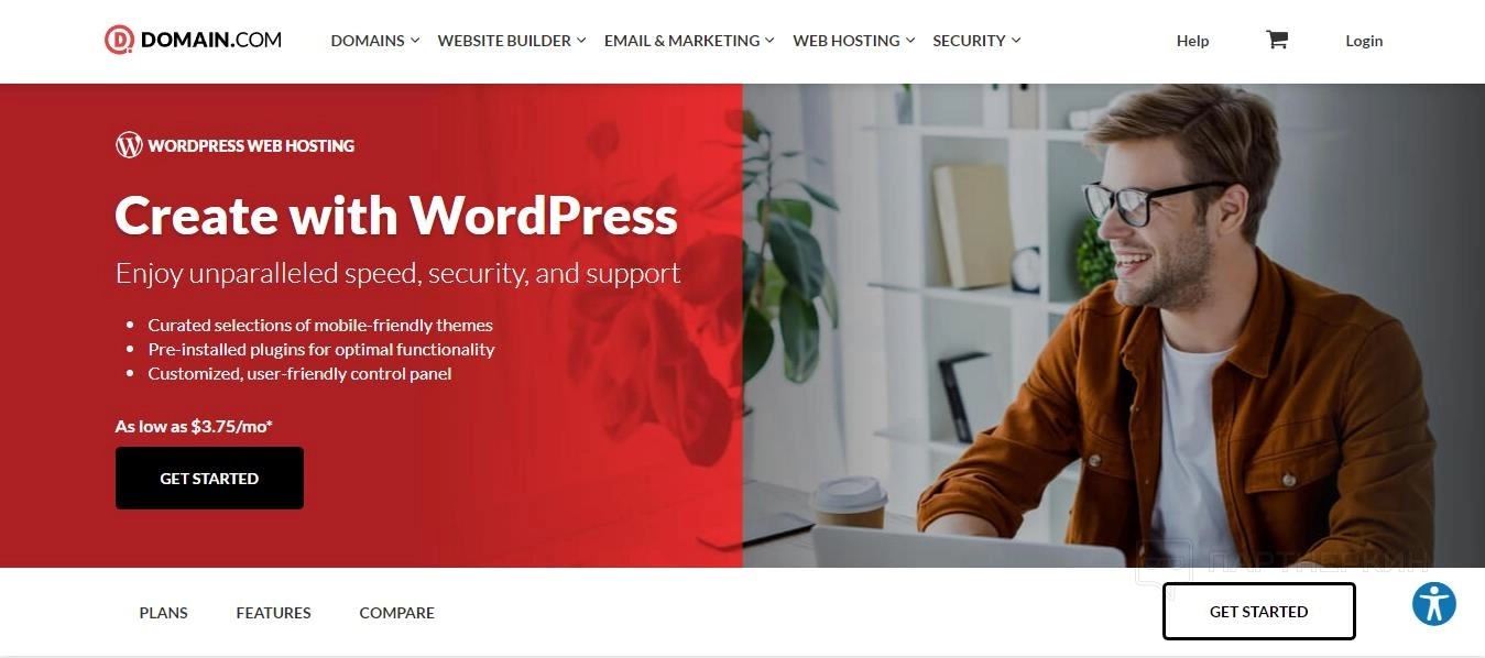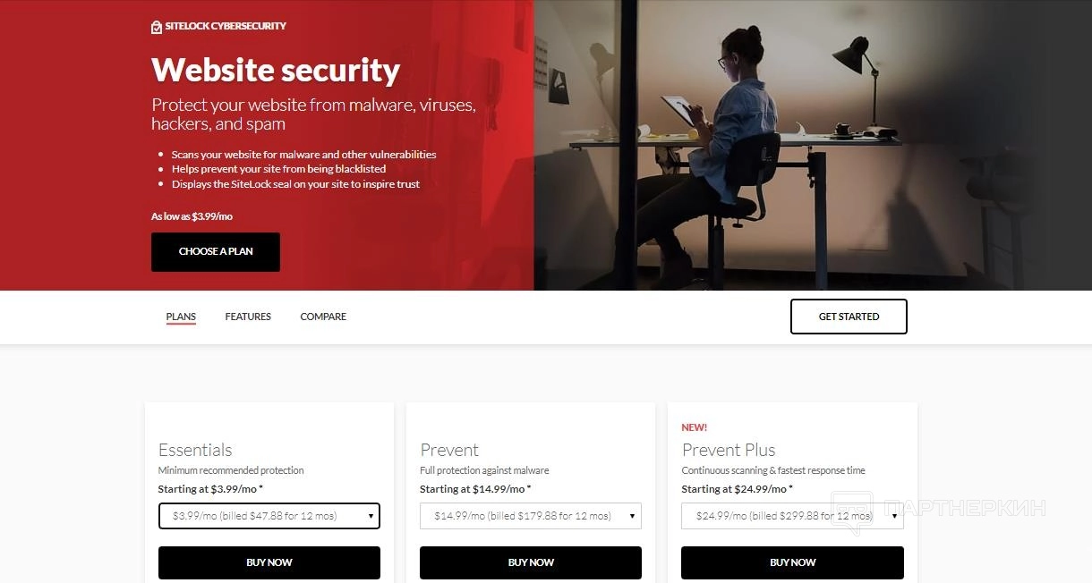 - WP Essential (от $6.95) включает в себя опции WP Starter и дополнительно предлагает более высокую скорость загрузки сайта и аптайм, автоматическое удаление опасного содержимого, подключение функции SiteLock Security и техподдержку 24/7.