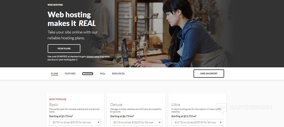 - Basic, от $3.75 в месяц . Доступен 1 веб-сайт и 1 домен. 10 баз MySQL, 5 логинов для FTP-доступа.