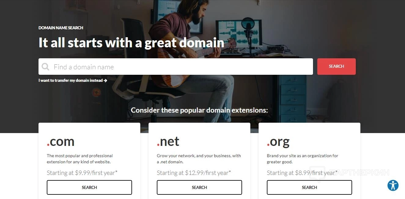- Огромный выбор доменных зон, в том числе нишевых вроде .garden, .travel или .yoga.
