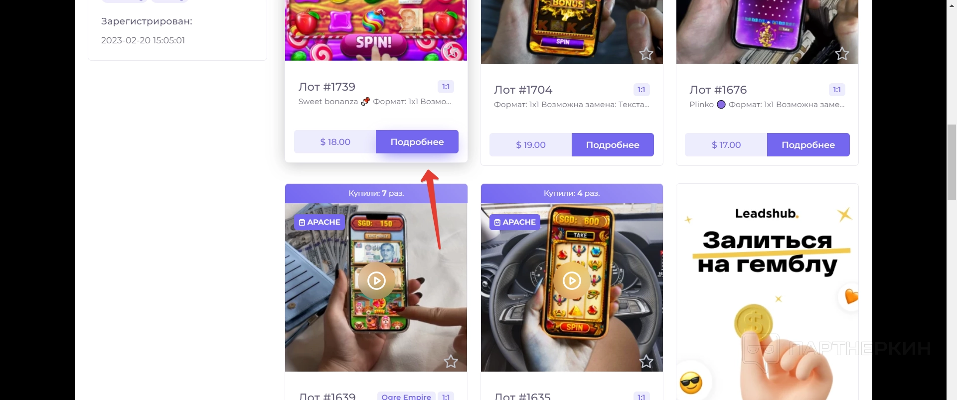 - Определитесь с самим креативом, который вы хотите приобрести, и нажмите на кнопку Подробнее . В этом разделе вы найдете подробное описание и изображения креатива, а также информацию о его цене и наличии.