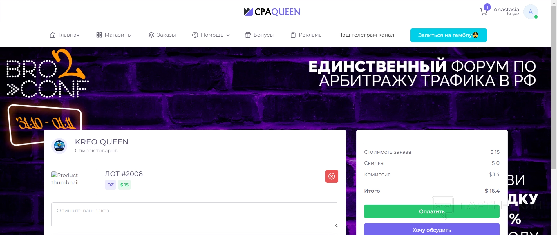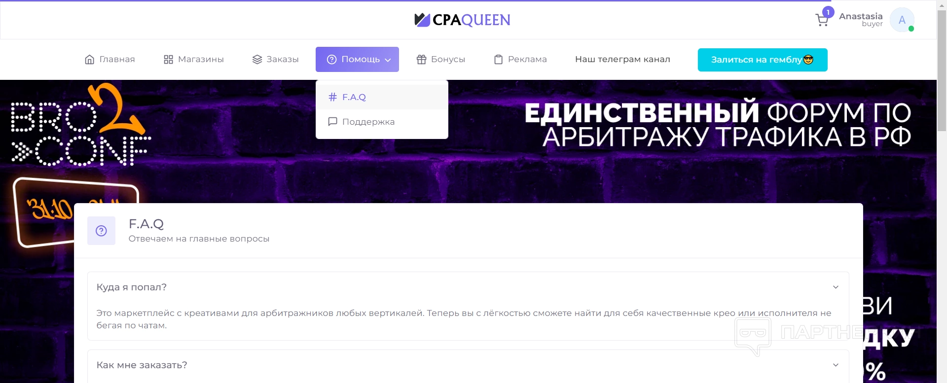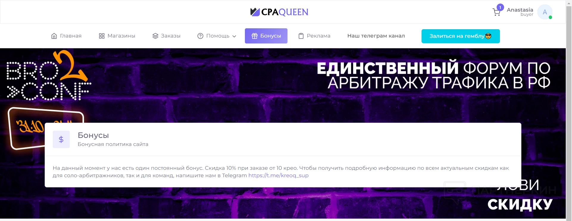 Покупка креативов на сервисе CPA Queen