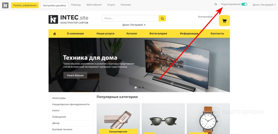При первом редактировании система может запросить ваш e-mail и пароль от личного кабинета. Вся информация о проектах появится в разделе «Мои сайты».