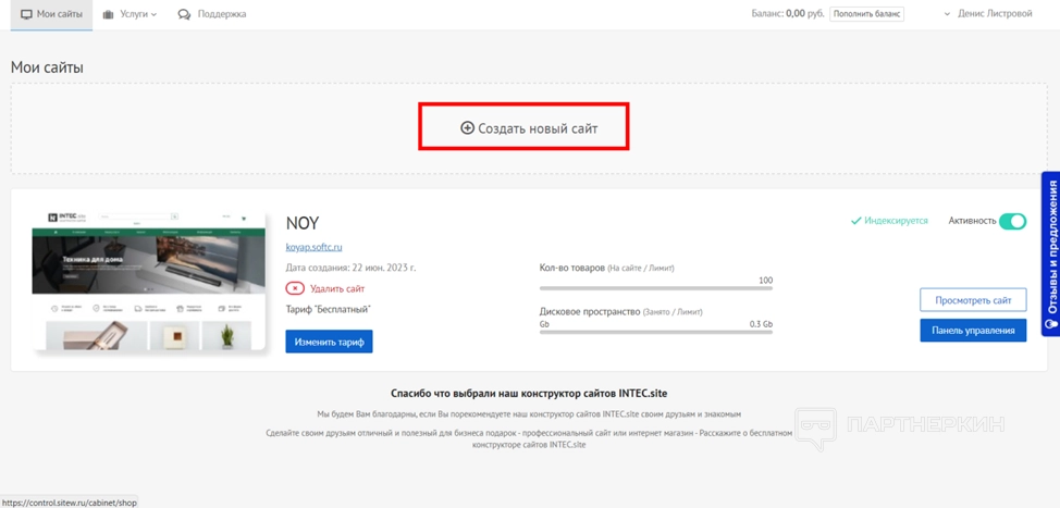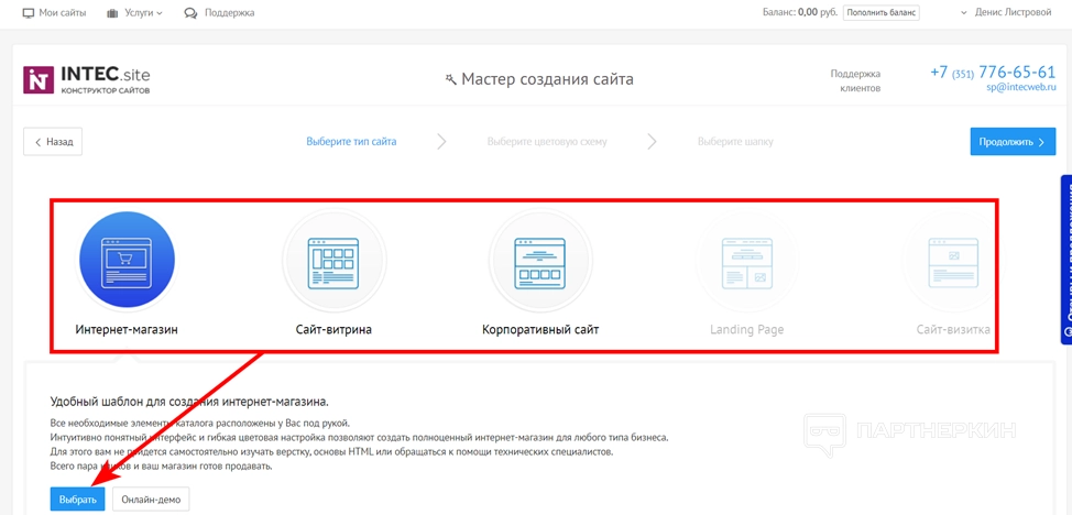 - Выберите тип сайта и нажмите на кнопку «Выбрать».