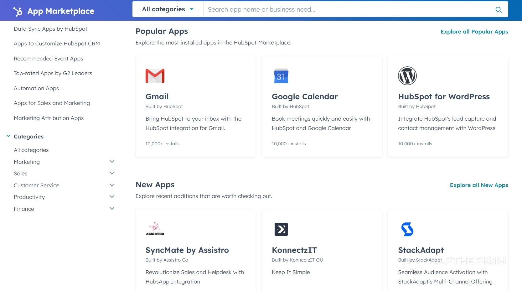 • ПП HubSpot для приложений предназначена для разработчиков и компаний, которые хотят развивать свой бизнес, создавая приложения на открытой платформе