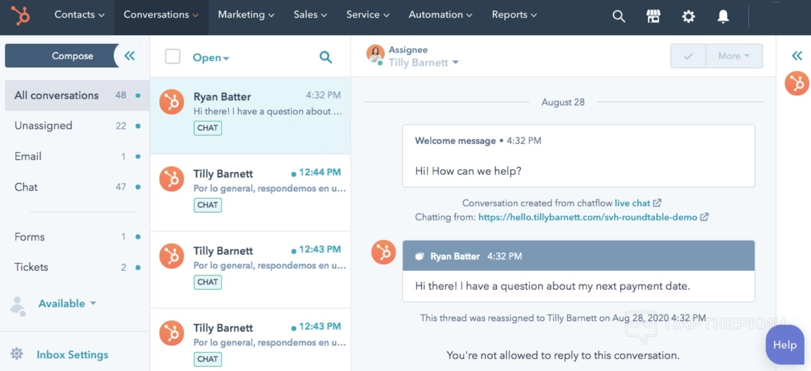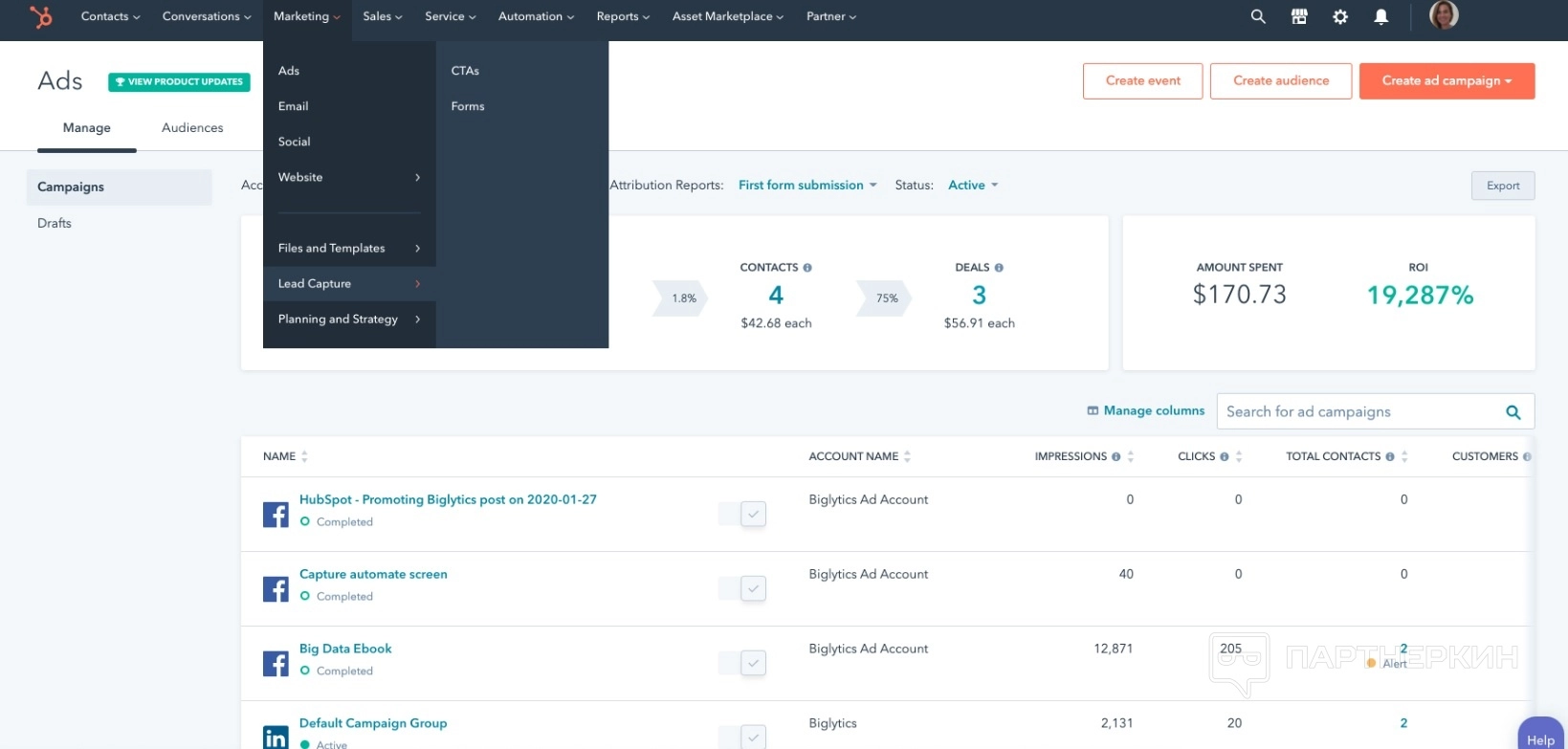 У Marketing Hub предусмотрена интеграция с отделом продаж и Salesforce для быстрой двунаправленной синхронизацией.