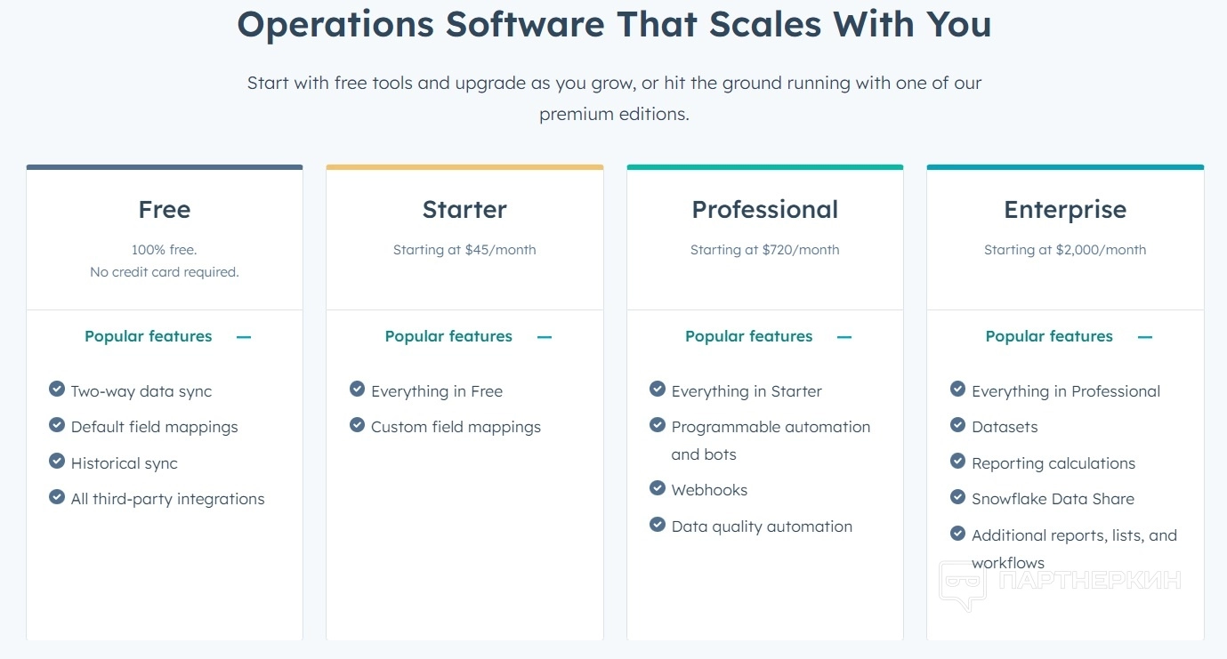 • Профессиональный — от $720/месяц, включает функции тарифа Стартер, плюс программируемая автоматизация и боты, вебхуки, автоматизация качества данных.