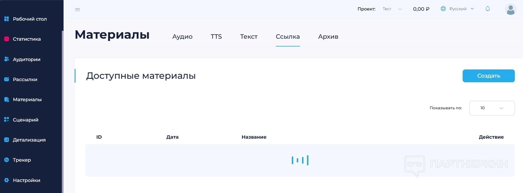 - Пользователь выбирает тип рассылки «Голосовая рассылка», загружает или создает новый голосовой материал, который затем проверяется и подтверждается.