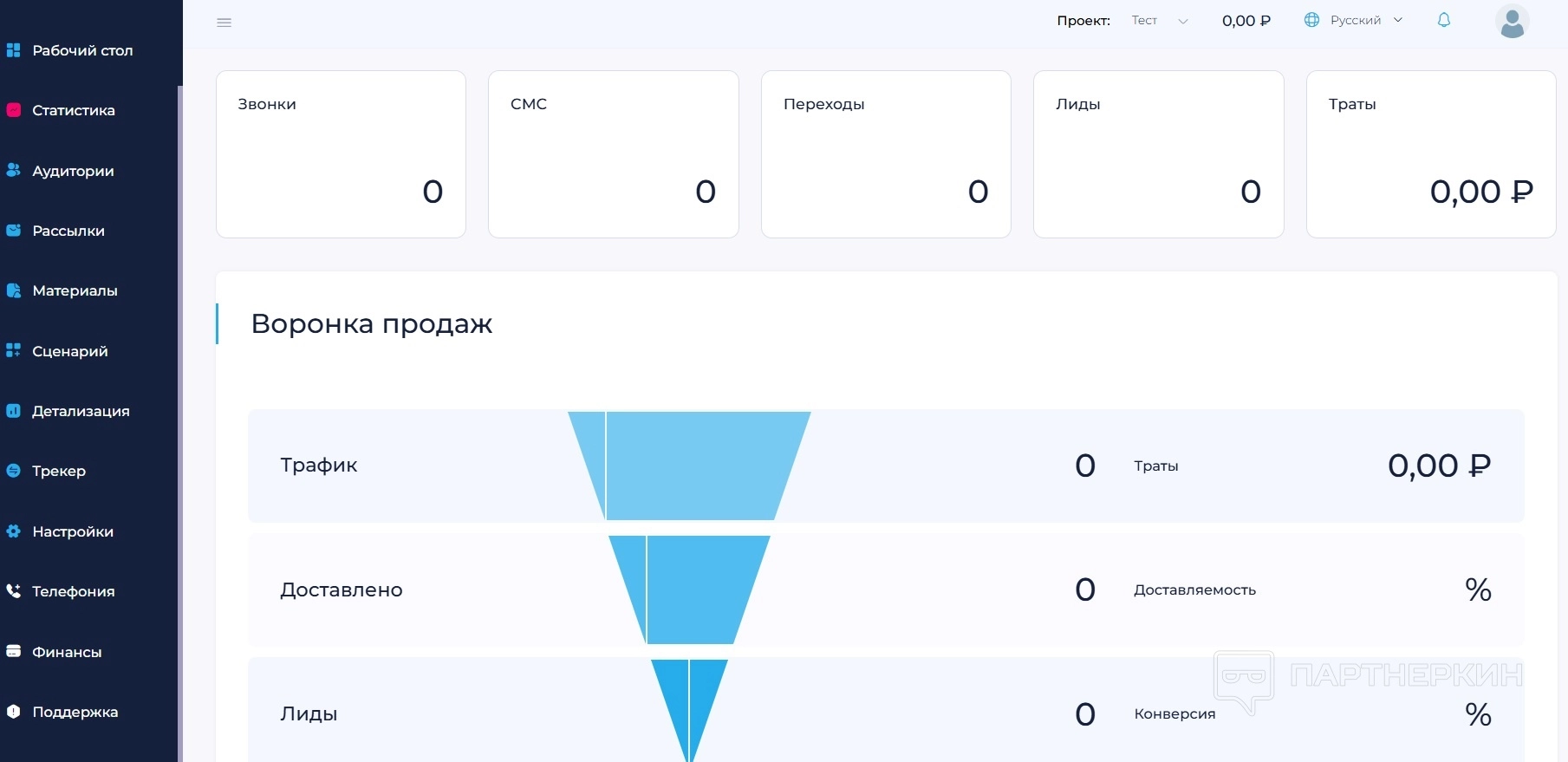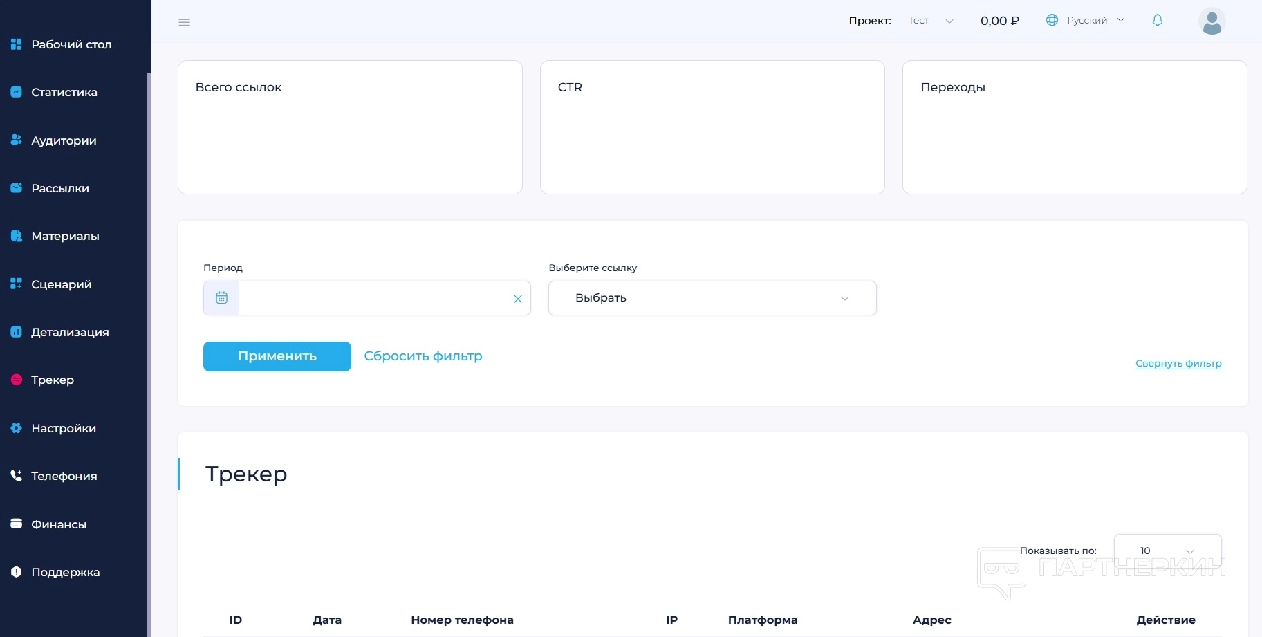- Трекинговая система. Она помогает глубоко анализировать переходы по ссылкам и настраивать цепочки коммуникаций.