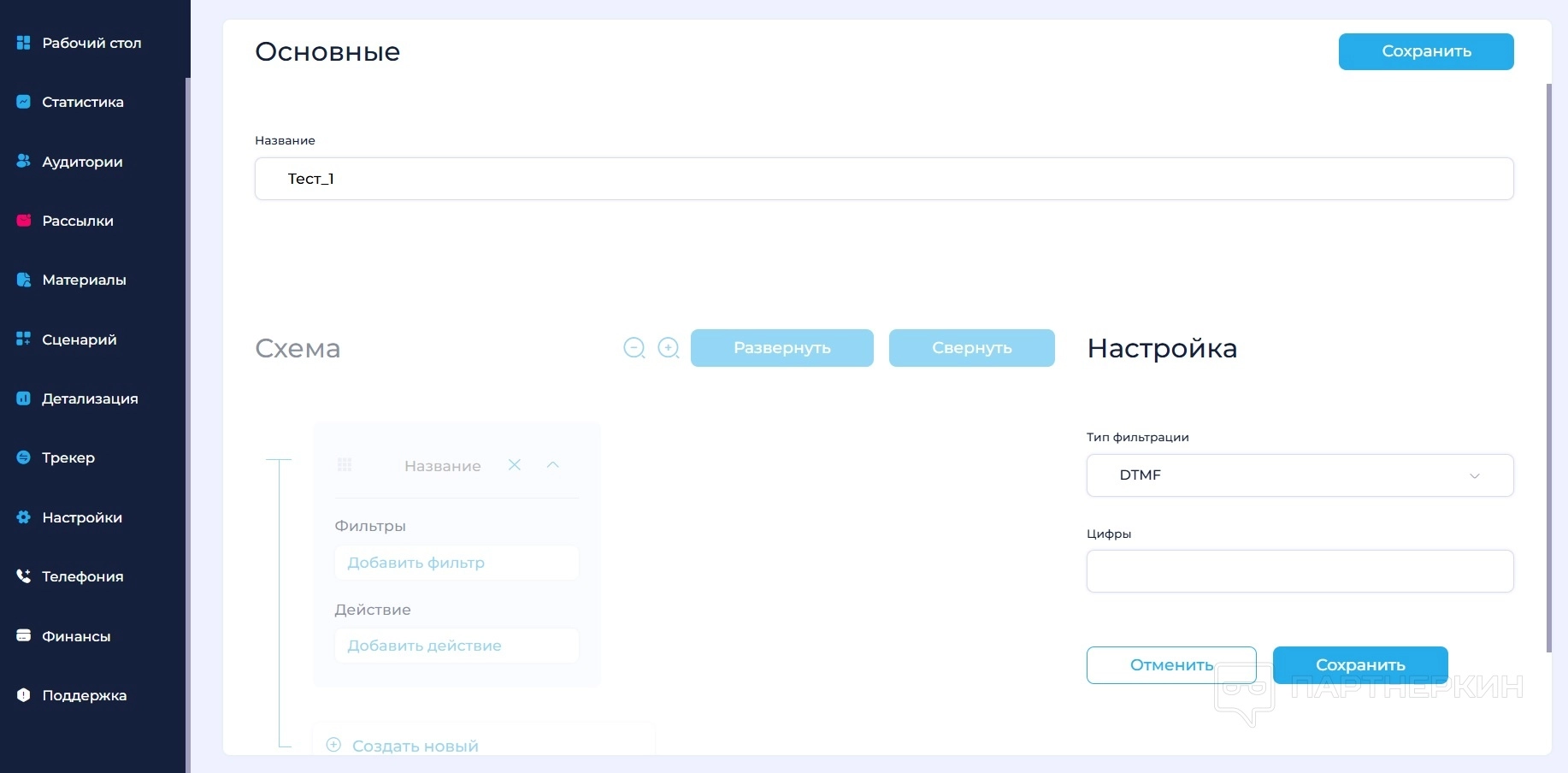 - Умные сценарии. Пользователи могут создавать сложные сценарии голосовых рассылок с множеством действий, обеспечивая персонализированный подход к каждому клиенту.