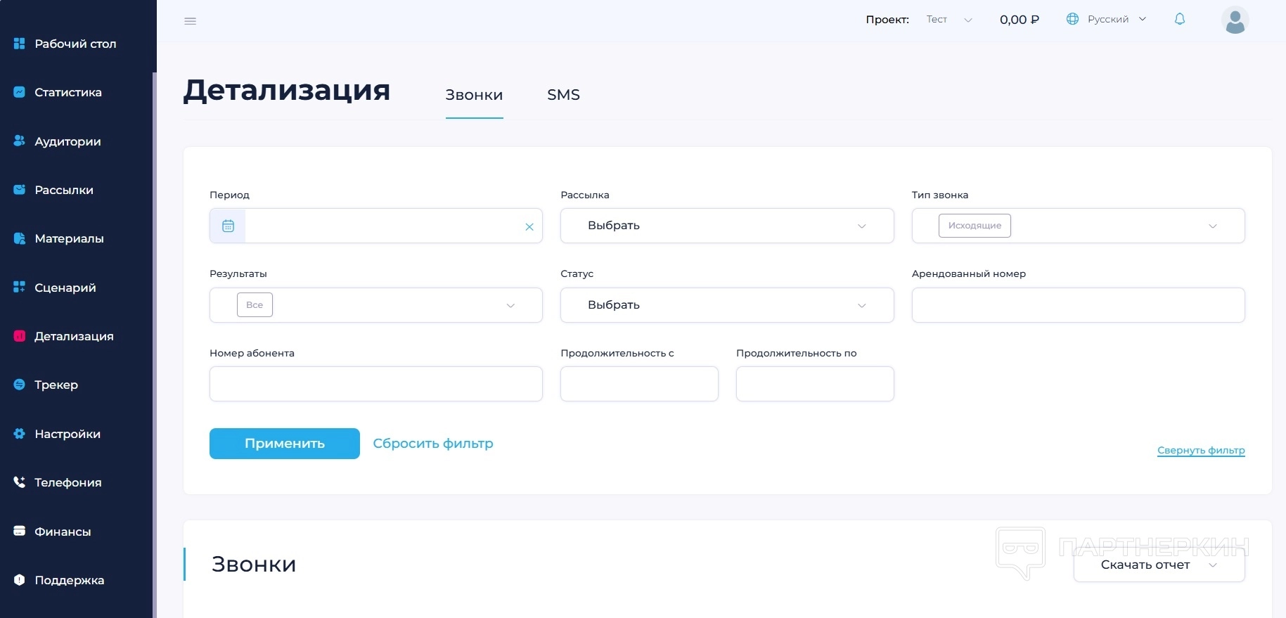 - После запуска рассылки предоставляются детализированные отчеты, включая статистические данные и записи разговоров, что помогает оценить и улучшить эффективность кампании.