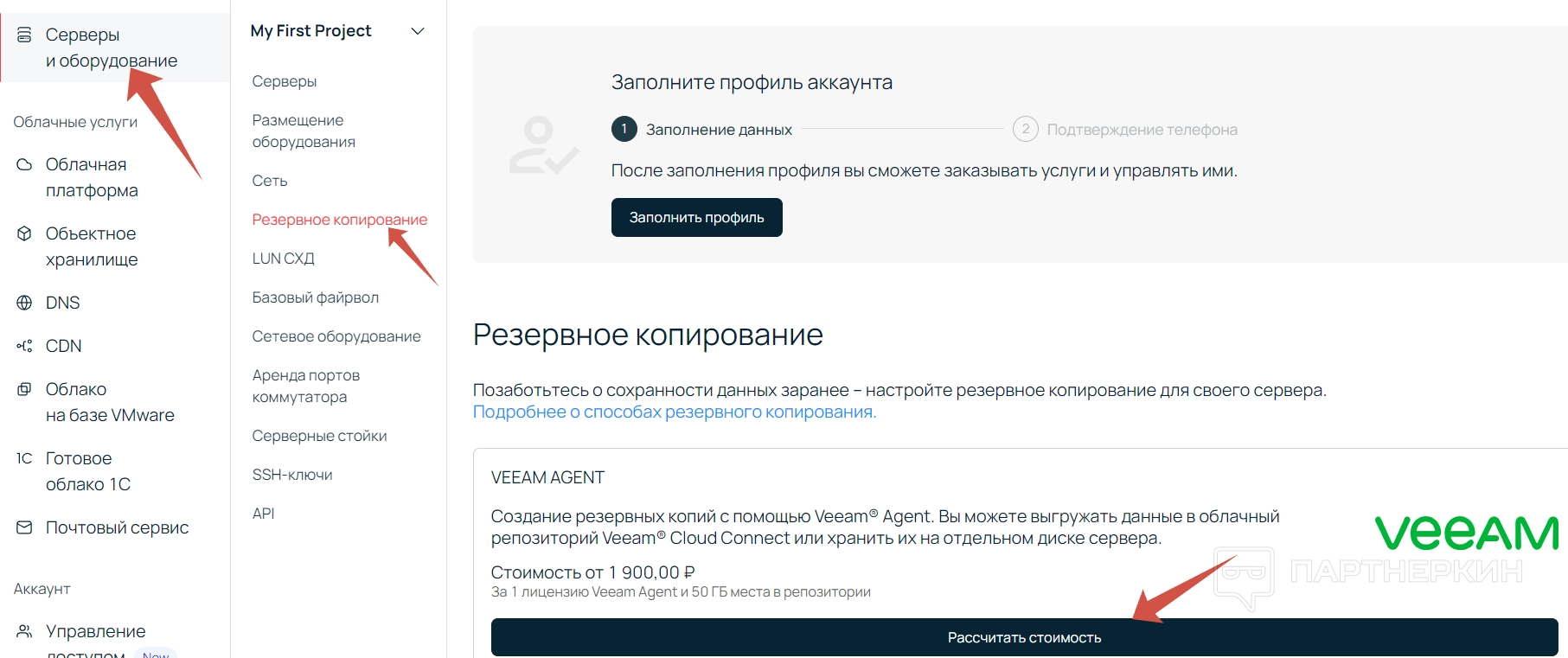 - Veeam Agent - позволяет осуществлять резервное копирование и хранение резервных копий выделенных серверов и виртуальных машин Облачной платформы.