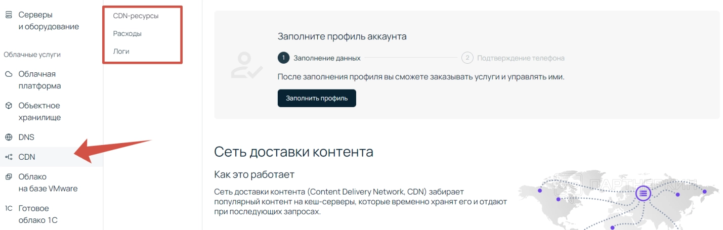 Далее находится вкладка «CDN», состоящая из 3 подвкладок:
