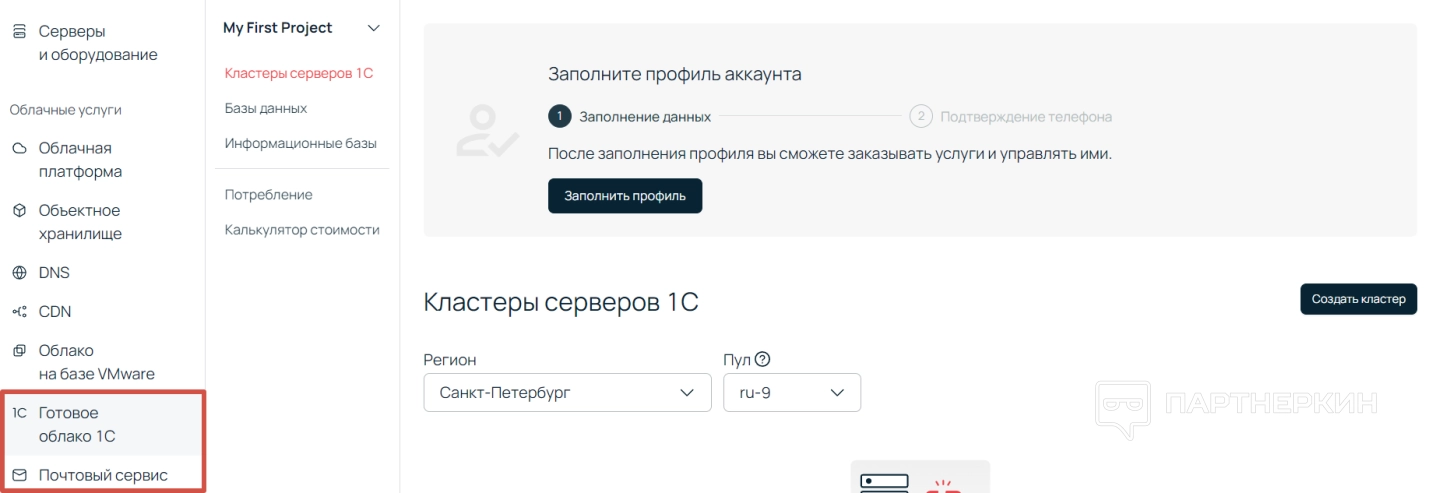 Остались вкладки «Готовое облако 1С» и «Почтовый сервис». В первой вы можете взять в аренду сервера 1С с последующей возможностью создания базы данных, а во второй – оформить ресурс, который позволять надежно и безопасно отправлять письма.