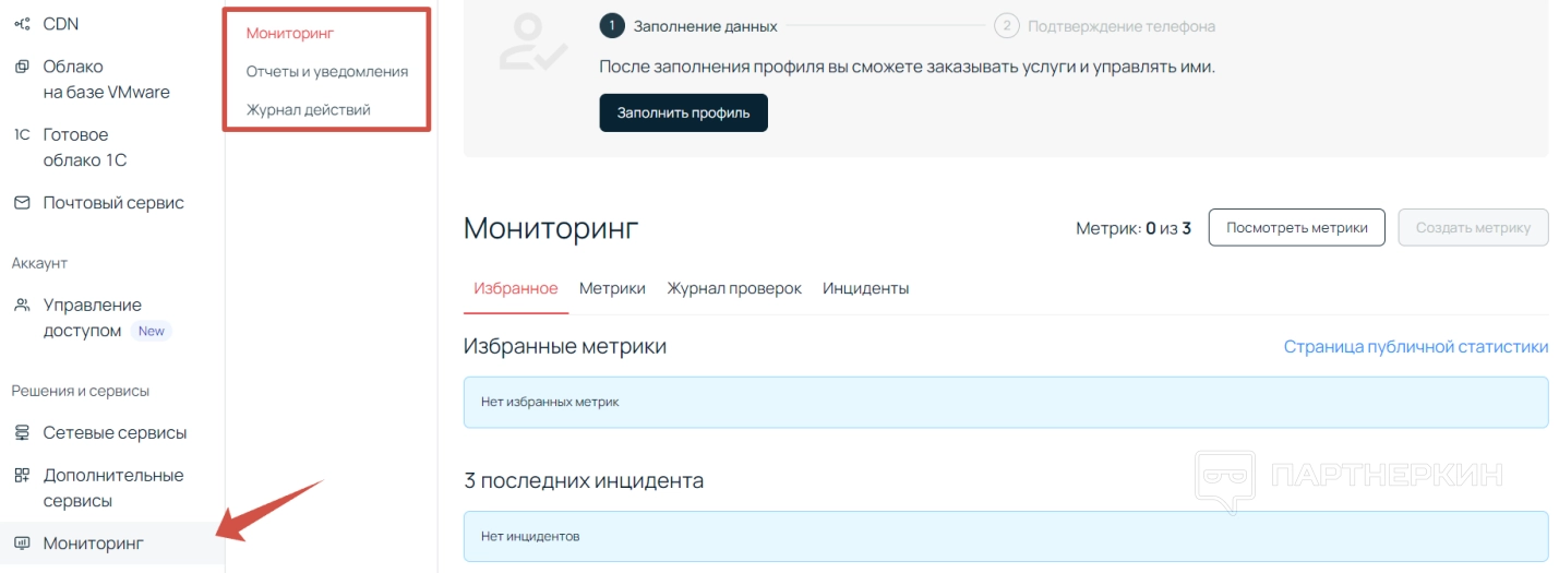 - Мониторинг – сводная информация по последним инцидентам, успешным проверкам и выбранным метрикам.