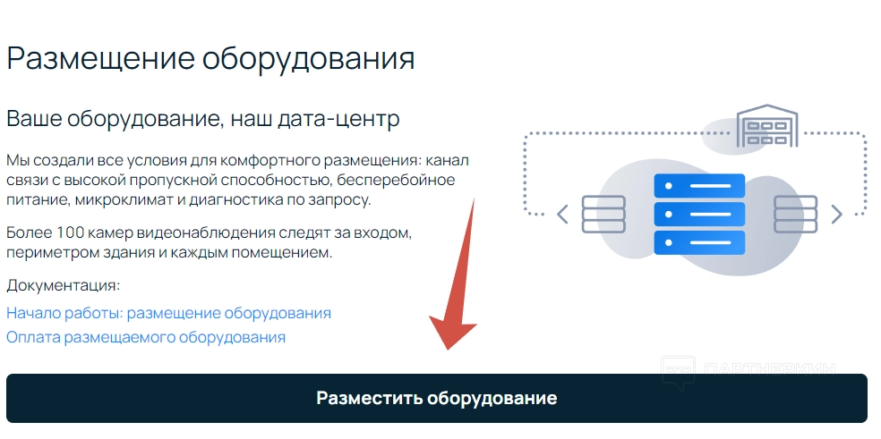 Далее идет вкладка «Размещение оборудования», с помощью которой вы можете оформить услугу по размещению оборудования. Осуществляется это по следующем схеме:
