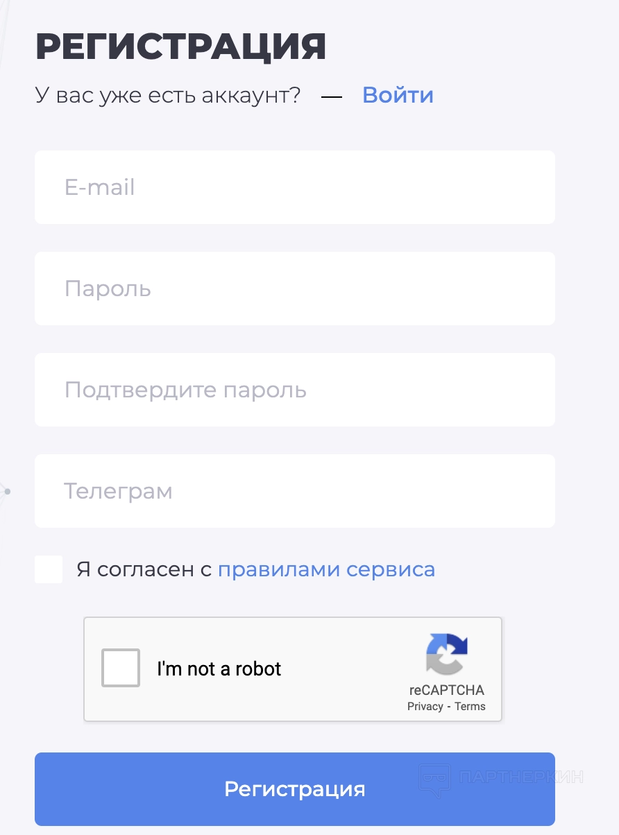 Для создания аккаунта нужно кликнуть на кнопку регистрации: