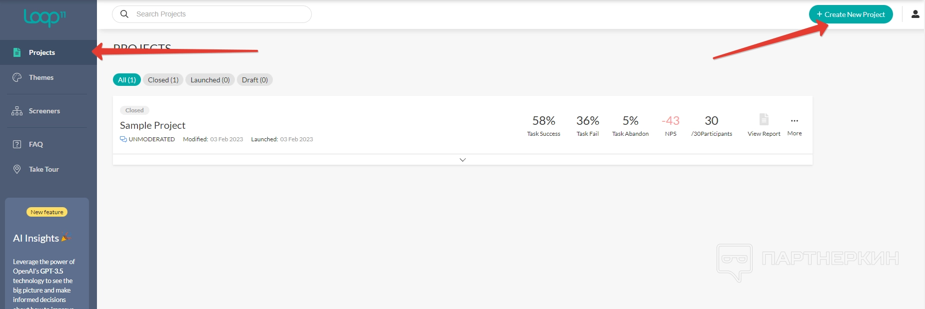 Чтобы создать проект, заходим в соответствующий раздел и жмем на «Создать новый проект» в правом верхнем углу.