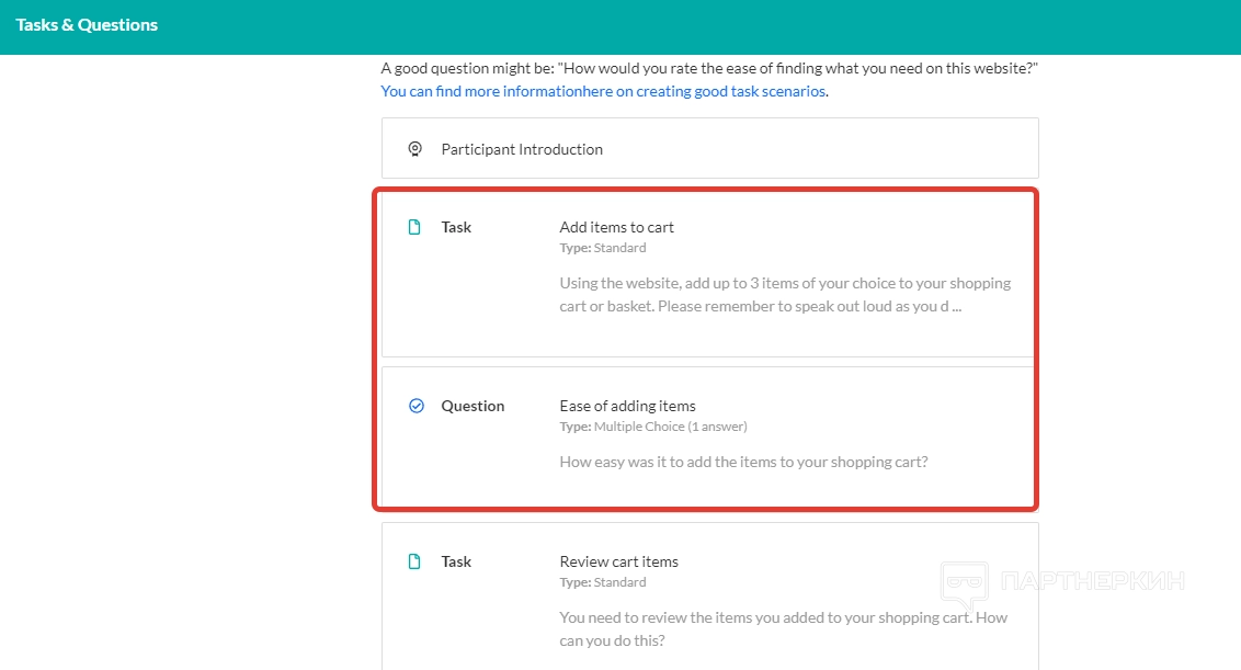 Теперь нужно заполнить блок «Задачи и вопросы». В форме «Задача» владелец сайта должен прописать задачу, которую будет выполнять тестировщик. В форме «Вопрос» задаются вопросы на счет того, насколько удобно выполнять поставленные задачи и есть ли необходимость улучшать какие-либо элементы.