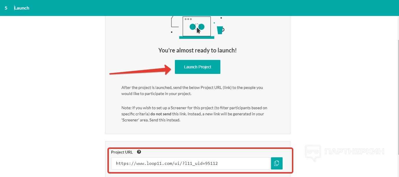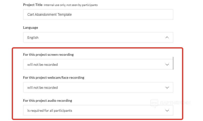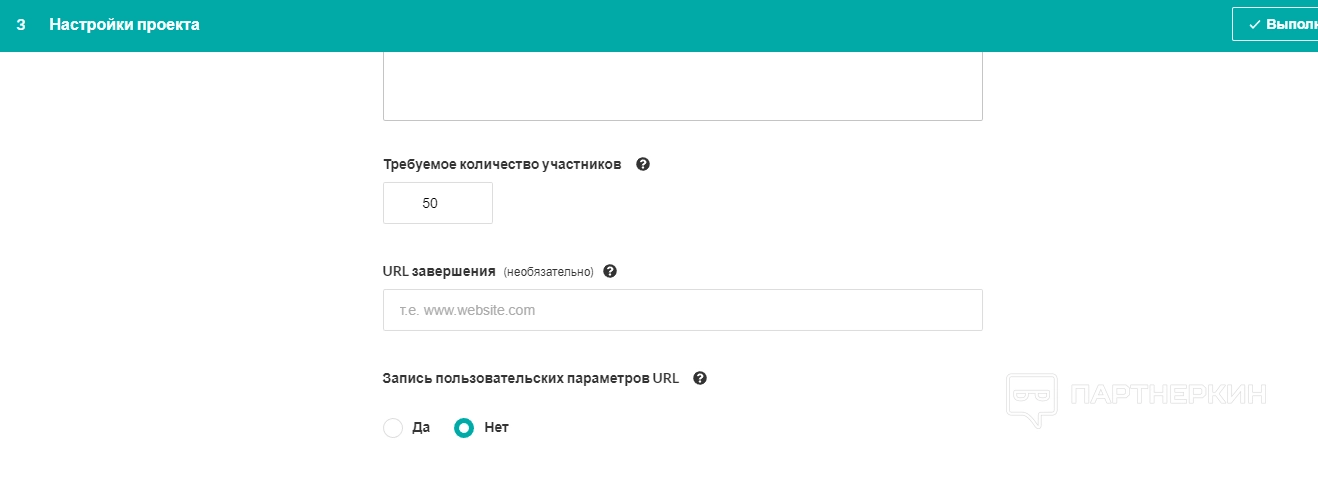 В блоке «Настройки проекта» выбираем количество участников, вставляем URL-адрес проверяемого продукта, выдаем разрешения на запись пользовательских параметров.