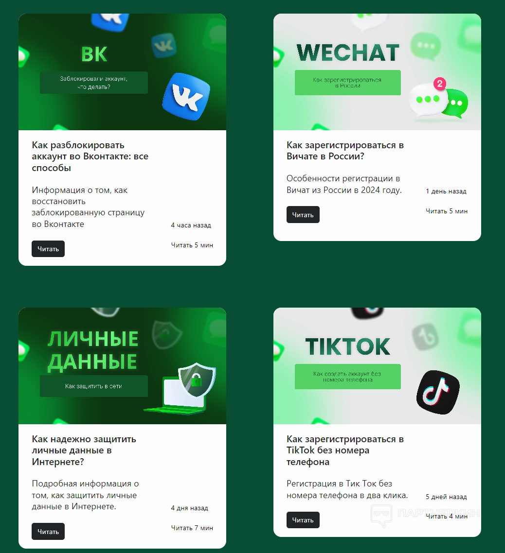 Здесь размещены информационные материалы, касающиеся абсолютно разных тем, начиная от того, как использовать смс-активатор для той или иной площадки, заканчивая полезными статьями, вроде «Как надежно защитить личные данные в Интернете?».