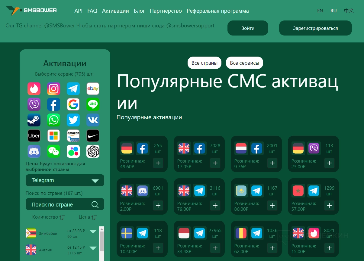 Сервис смс-активации «SMSBower» предлагает купить надежные виртуальные номера для регистрации аккаунтов в социальных сетях, мессенджерах, службах доставки и на других площадках, где требуется верификация пользователя при помощи мобильного телефона. Свои клиентам данный смс-активатор предлагает следующие преимущества: