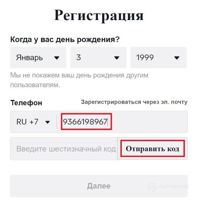 - Теперь нам нужно перейти на сайт ТикТок и попробовать воспользоваться виртуальным номером для тестирования смс-активатора. Что мы и сделали, после чего запустили процесс регистрации нового пользователя. Номер, естественно, указали купленный на «SMSBower».