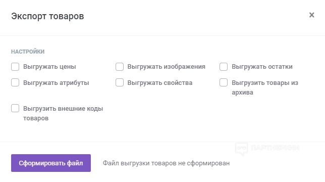 Как выгрузить данные по товарам: