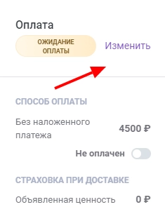 - Перейти к настройке оплаты. Нажать «Изменить».