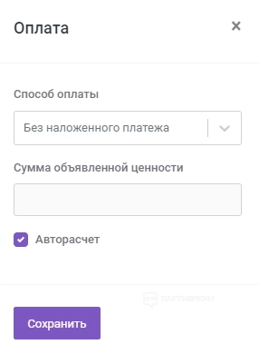 - Выбрать способ оплаты (без наложенного платежа, предоплата картой на сайте, оплата наличными при получении, оплата картой при получении). Еще в окне можно указать желаемую сумму страховки (снять галочку с пункта «Авторасчет»).