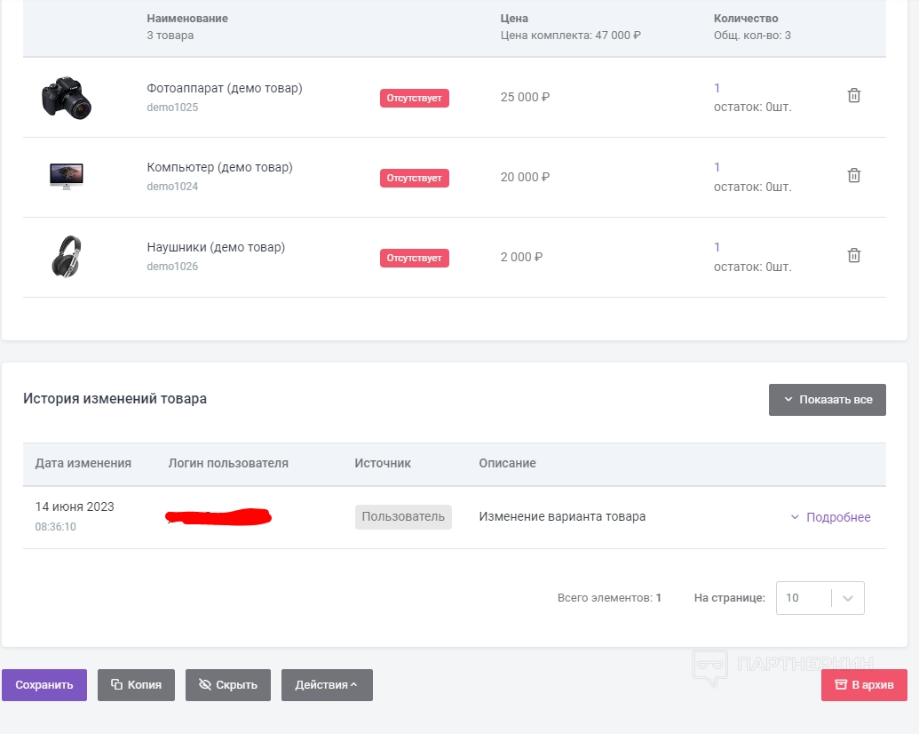 Комплекты товаров позволяют группировать различные товары вместе и продавать их как единое целое.