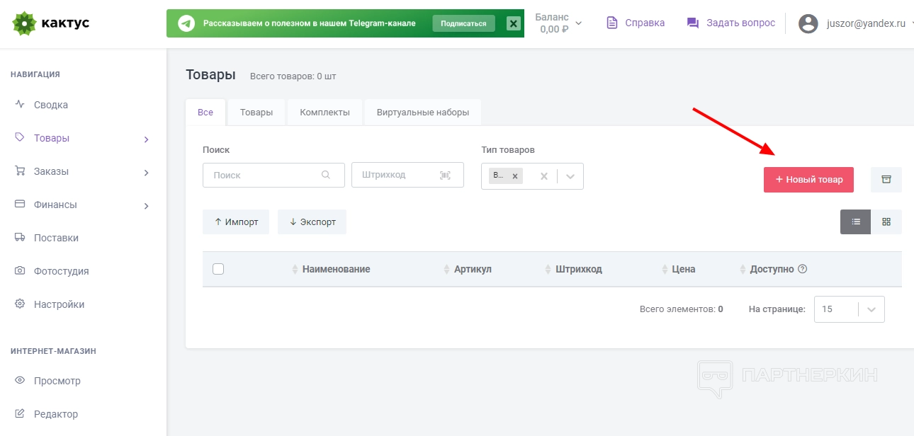 - На панели инструментов перейти во вкладку «Товары» и нажать кнопку «Новый товар».