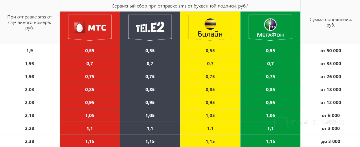 Отправка на Tele2, Билайн, Мегафон и МТС