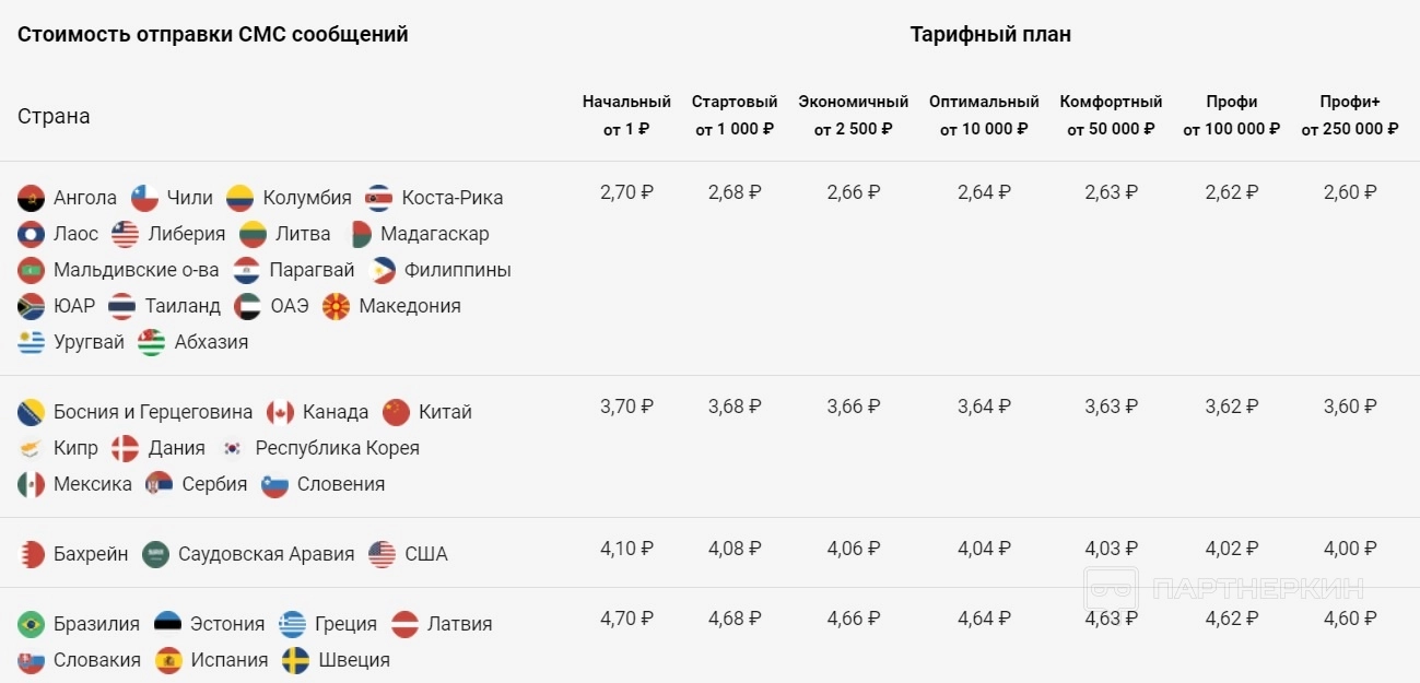 - Широкая география: возможность запускать SMS-рассылки по всем странам мира.