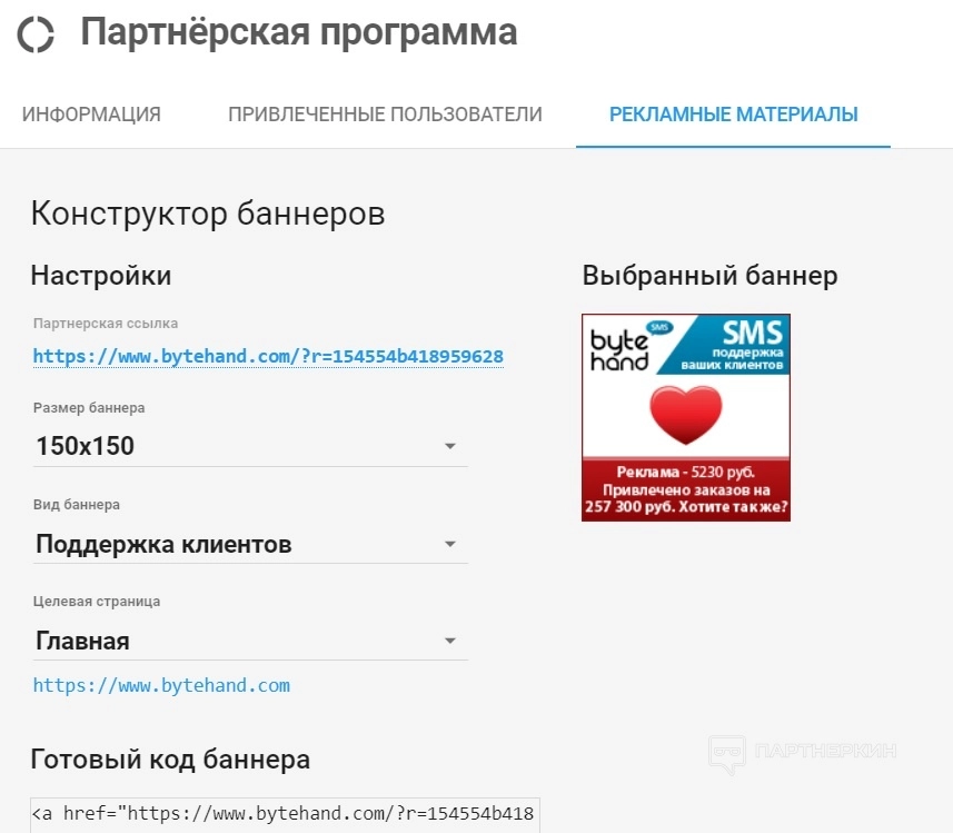 Партнерскую ссылку можно размещать на личном сайте, в соцсетях. В личном кабинете клиента