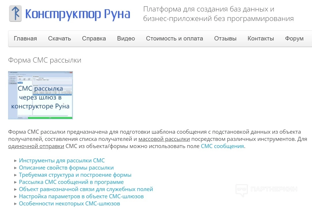 Происходит отправка SMS по заранее подготовленному шаблону в зависимости от события с подстановкой данных по получателю или операции. Чтобы использовать Конструктор Руна, нужно обратиться к инструкциям.