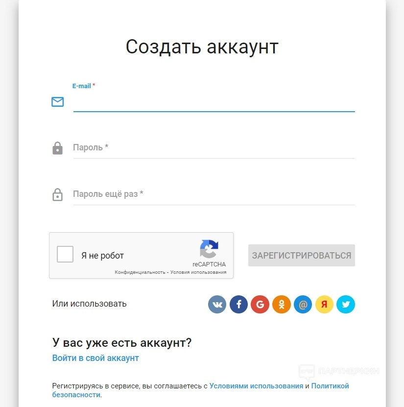 Для начала работы понадобится зарегистрировать и создать аккаунт. Нужно предоставить email, придумать надежный пароль. Данные кредитной карты указывать не потребуется. Можно авторизоваться через Google и социальные сети.