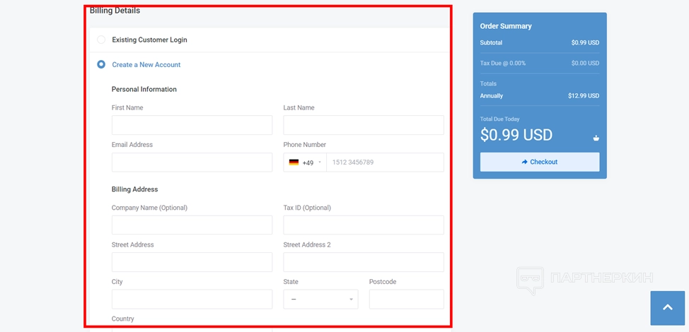 - Оформите покупку и нажмите на Checkout.