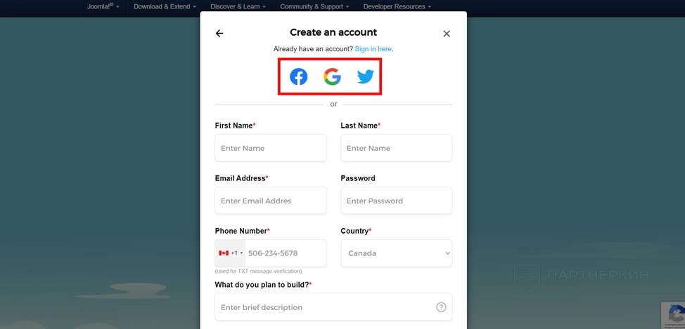 - Можно использовать аккаунт социальной сети, но регистрационную форму все равно придется заполнить.