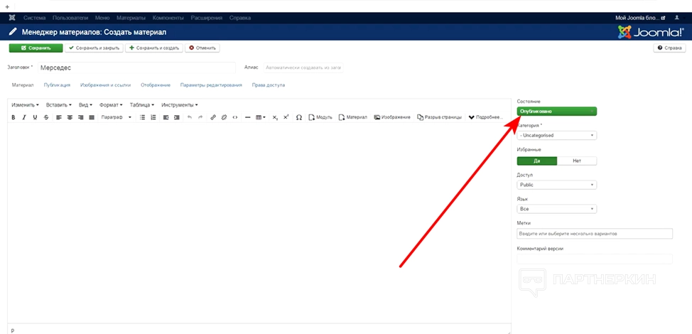 Кнопка «Опубликовано» будет отмечена зеленым цветом.
