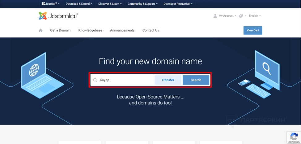 - Впишите доменное имя, которое хотите использовать и нажмите на кнопку Search.