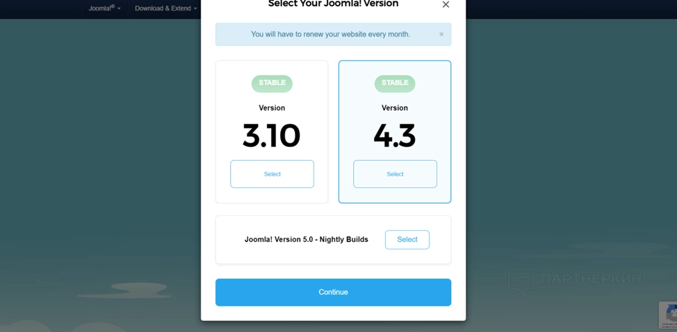 - Выберите версию, с которой будете работать и нажмите на кнопку Continue.