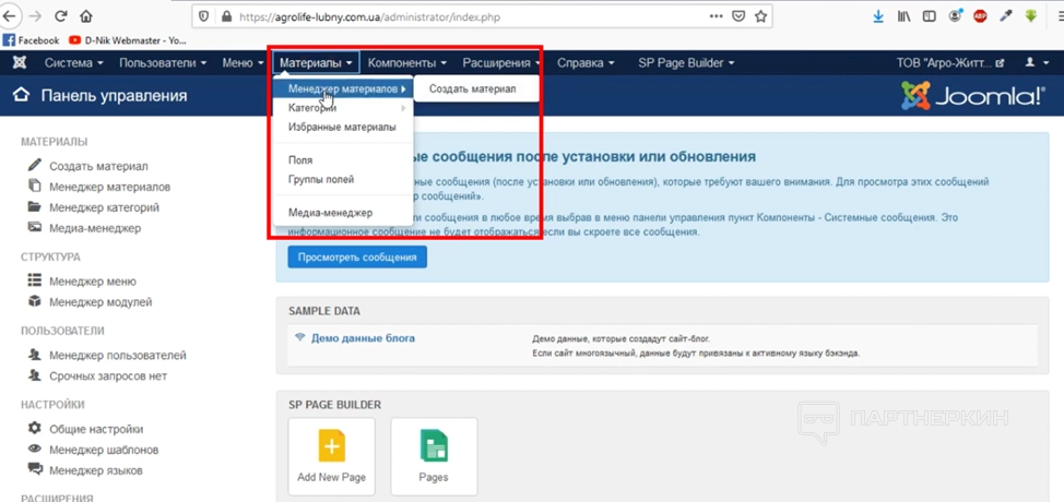Создание сайта в Joomla!