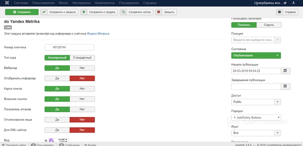 Добавить на сайт код отслеживания «Яндекс.Метрики» можно с помощью плагина do Yandex Metrika. После установки программы включите ее и перейдите на страницу настройки. На вкладке «Модуль» введите ID идентификатора. Выберите подходящие настройки и сохраните изменения. В «Яндекс.Метрике» проверьте, поступают ли данные с сайта.