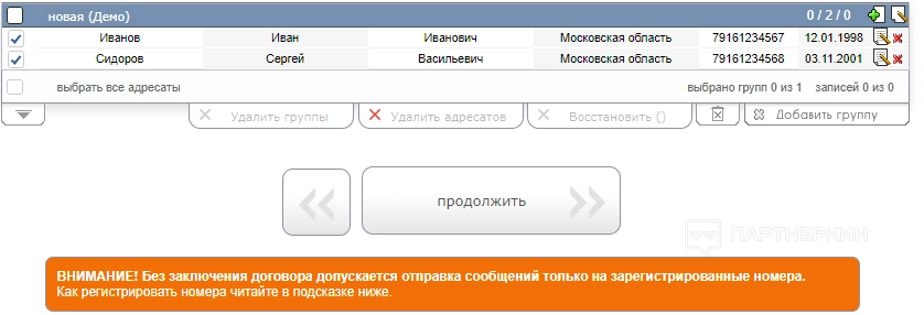 Без заключения договора допускается отправка сообщений только на зарегистрированные номера. Инструкция по регистрации номера: