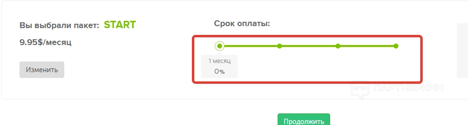 Выбрав тарифный план, пользователю необходимо определиться со сроком оплаты. По умолчанию система предлагает взять подписку на месяц. Но при желании тарифный план можно оплатить на 3, 6 и 12 месяцев вперед.