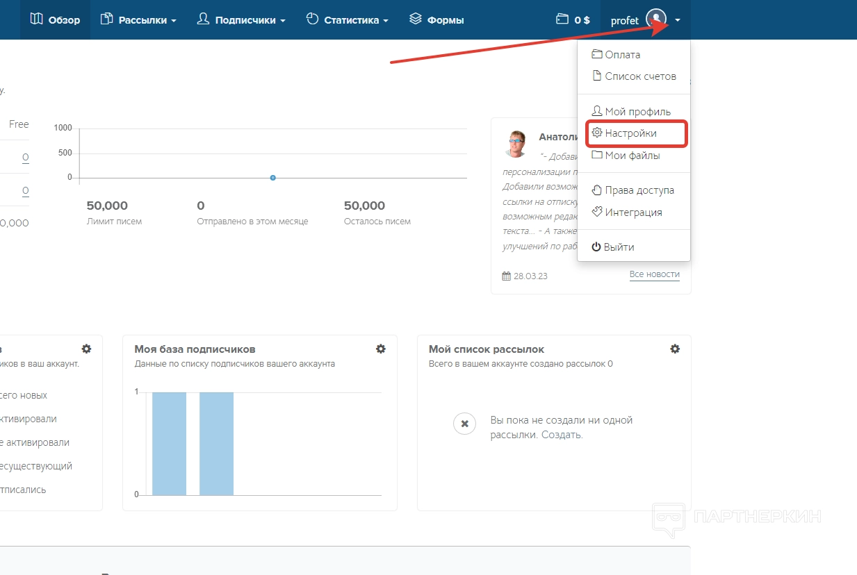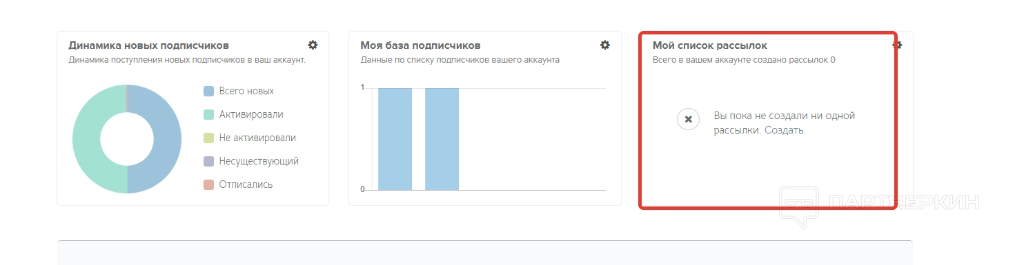 - Обзор . В этом разделе отображается сводная информация по рассылкам и самой учетной записи.