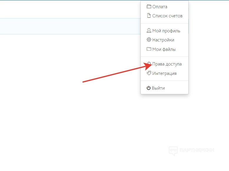 В контекстном меню настроек личного кабинета есть вкладка «Права доступа», где можно выдать доступ к аккаунту сторонним пользователям.