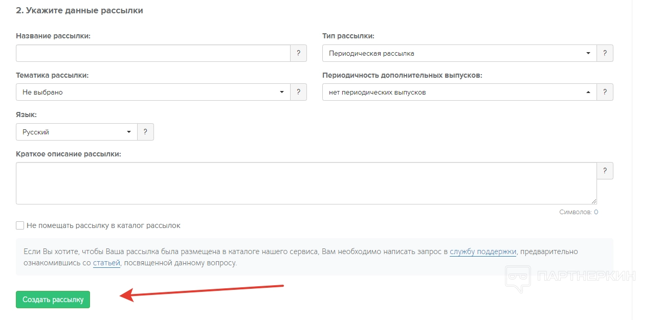Указываем все данные и жмем на кнопку «Создать рассылку».