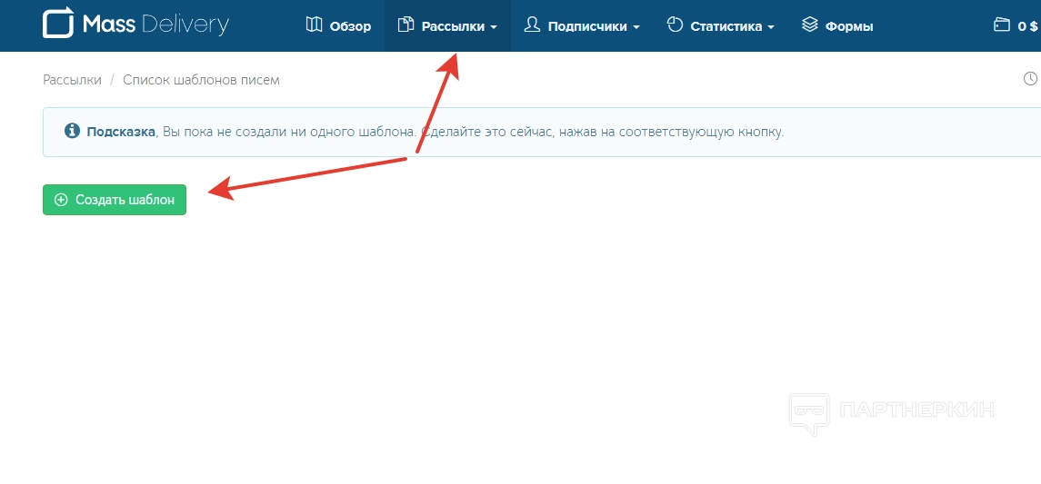 - список шаблонных писем — здесь создаются шаблоны для писем рассылок;