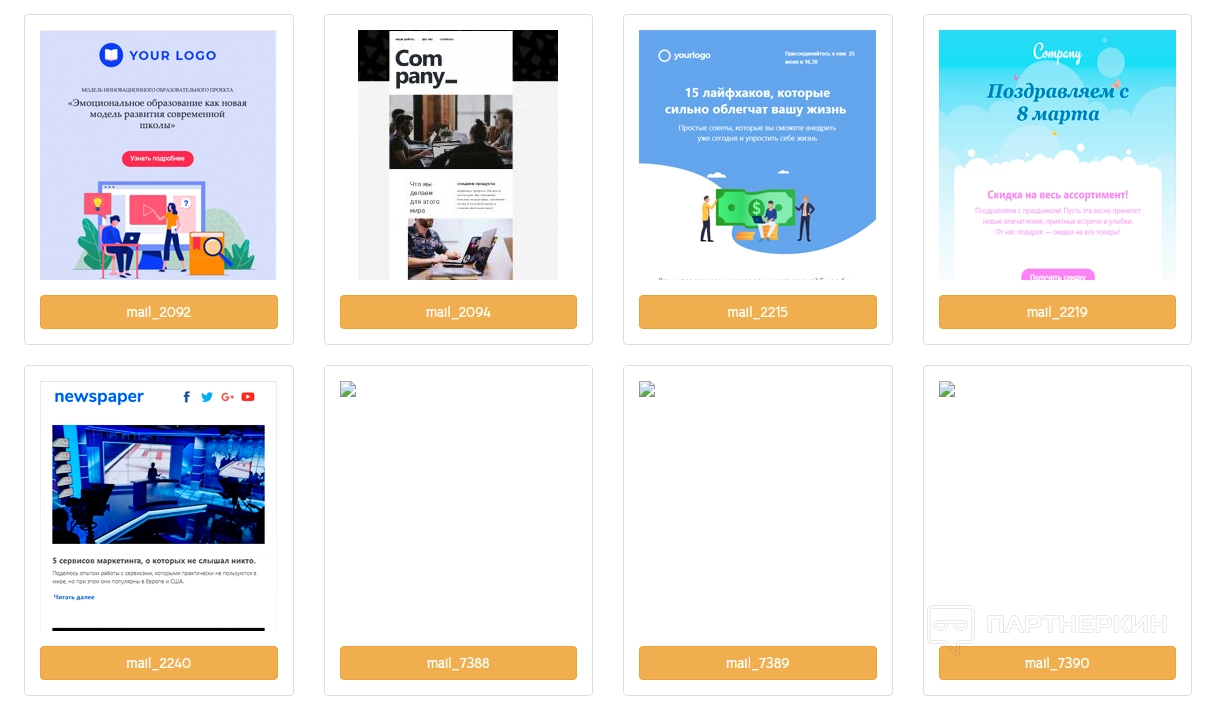 Выбрав, допустим, блочный редактор Drag&Drop, пользователю нужно определиться с шаблоном. На момент написания статьи сервис предлагал шаблоны для писем по следующим категориям: